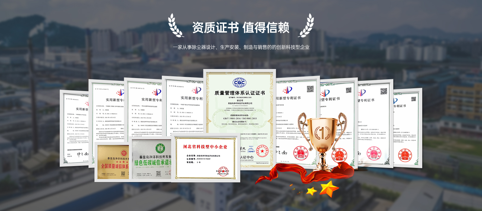 秦皇岛净环科技开发有限公司(简称“净环科技”)位于秦皇岛市海港区,前身为中国环境管理干部学院科技开发公司所属企业,是一家从事除尘器设计、生产安装、制造与销售的的创新科技型企业。 成立20年来始终专注于环保领域研发及应用,致力于提供生态环境综合治理系列方案,业务涵盖大气污染治理、水污染处理、固废处理、土壤修复。产品技术全面达到国际先进水平,部分达到国际领先水平,产品销遍全国34个省、市、自治区,在市场中创造了自己的一片天地,树立了良好的企业形象。 因国家引导环保重点治理Vocs的方向,
